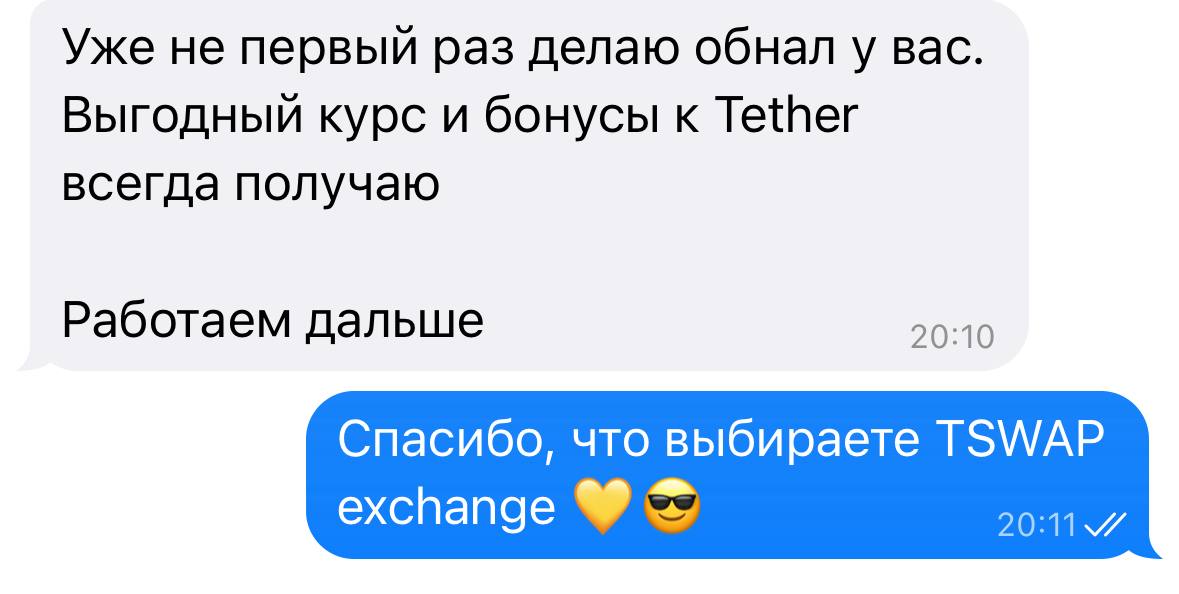 Первый раз было стремно, но после первой сделки сразу понял — ребята нормальные. Курс честный, бонус к Tether реально дали.
