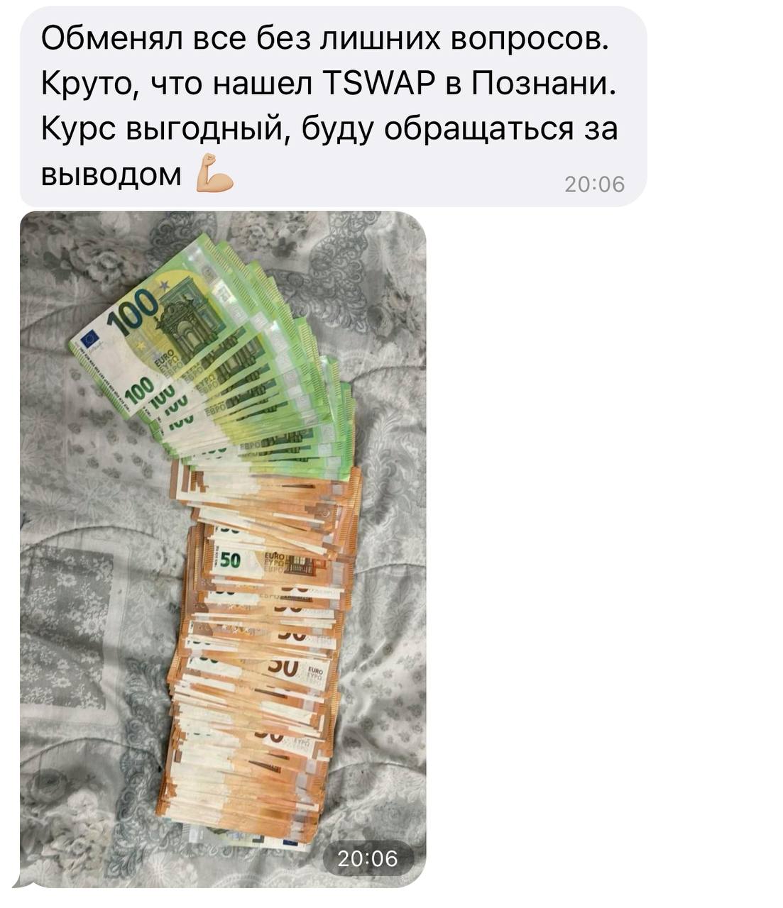 Сделал обмен в Варшаве, всё как по инструкции: договорились в телеге, через полчаса уже на месте, курьер отдал кэш — я отправил USDT. Без вопросов, быстро и безопасно.